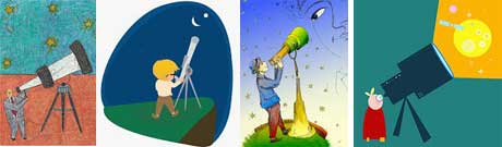 Razibus retrouva dans son grenier une lunette astronomique, qui avait appartenu, dit-on, à un certain Père Iscope. Il la bricola à l’aide d’une vieille règle à calcul, d’une horloge détraquée et d’un fil à couper le beurre, et la transforma en lunette à observer l’avenir, en “lunette astrologique”, comme il l’appelait !